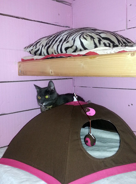 Les chambres, de la pension féline, sont aménagées comme à la maison (lits, couettes, fauteuils, coussins). Les jouets sont adaptés à vos compagnons : arbres à chat, griffoirs, souris (tissus), peluches etc...