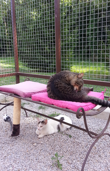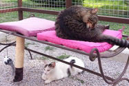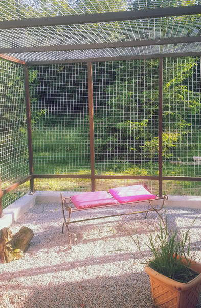 Les jardins de la pension pour chats sont entierement sécurisés, attenant aux chambres. Vos amis et animaux de compagnies y accèdent selon leurs envies.
